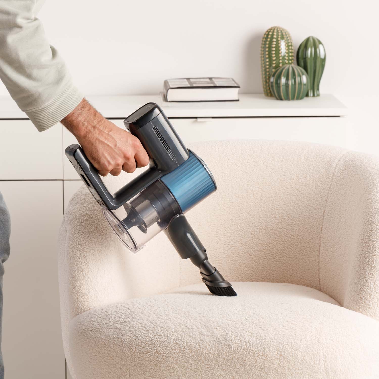 - Accessori inclusi: supporto da muro, spazzola 2 in 1 + lancia 2 in 1, caricabatterie