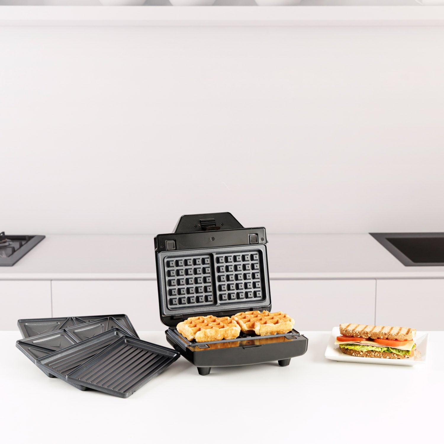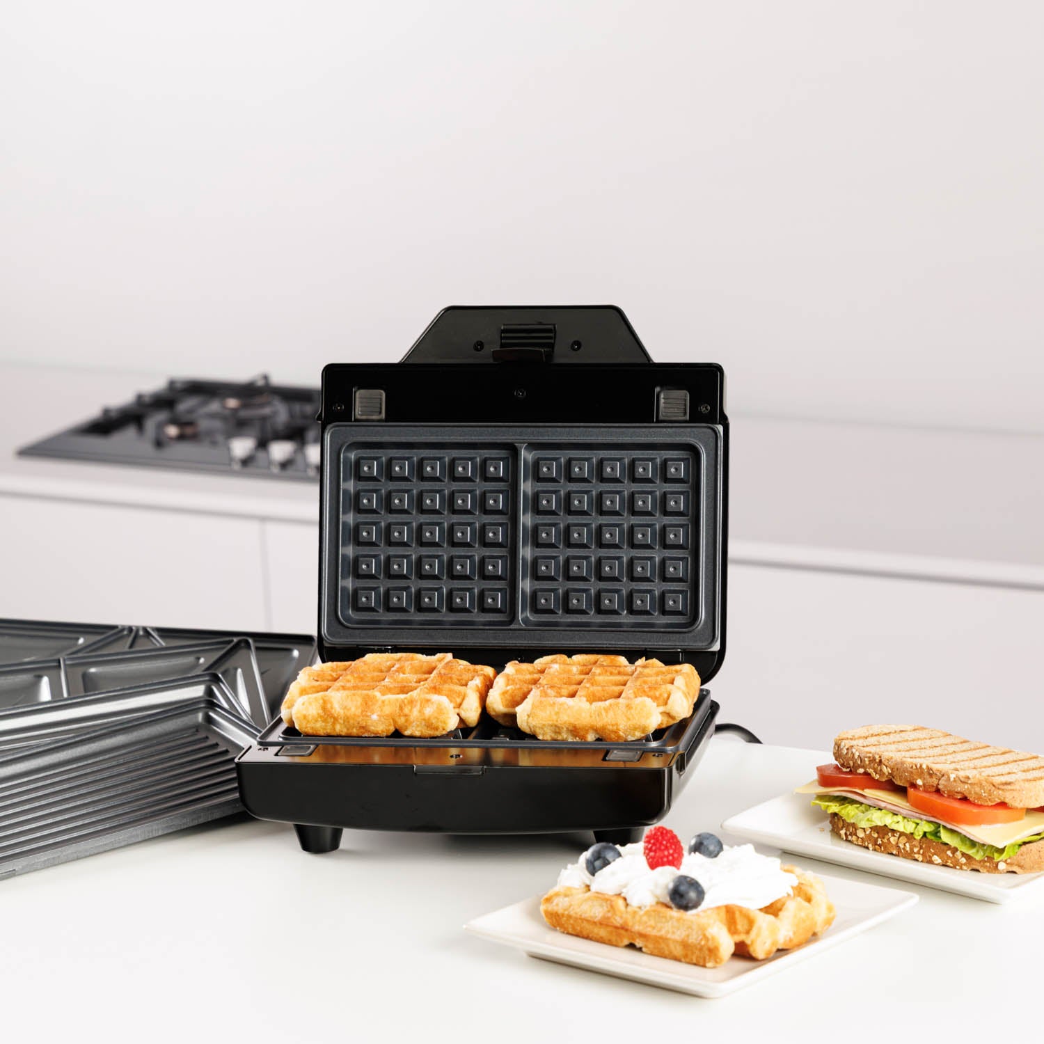 - 3 wymienne płyty: do tostów, grillowania i gofrów