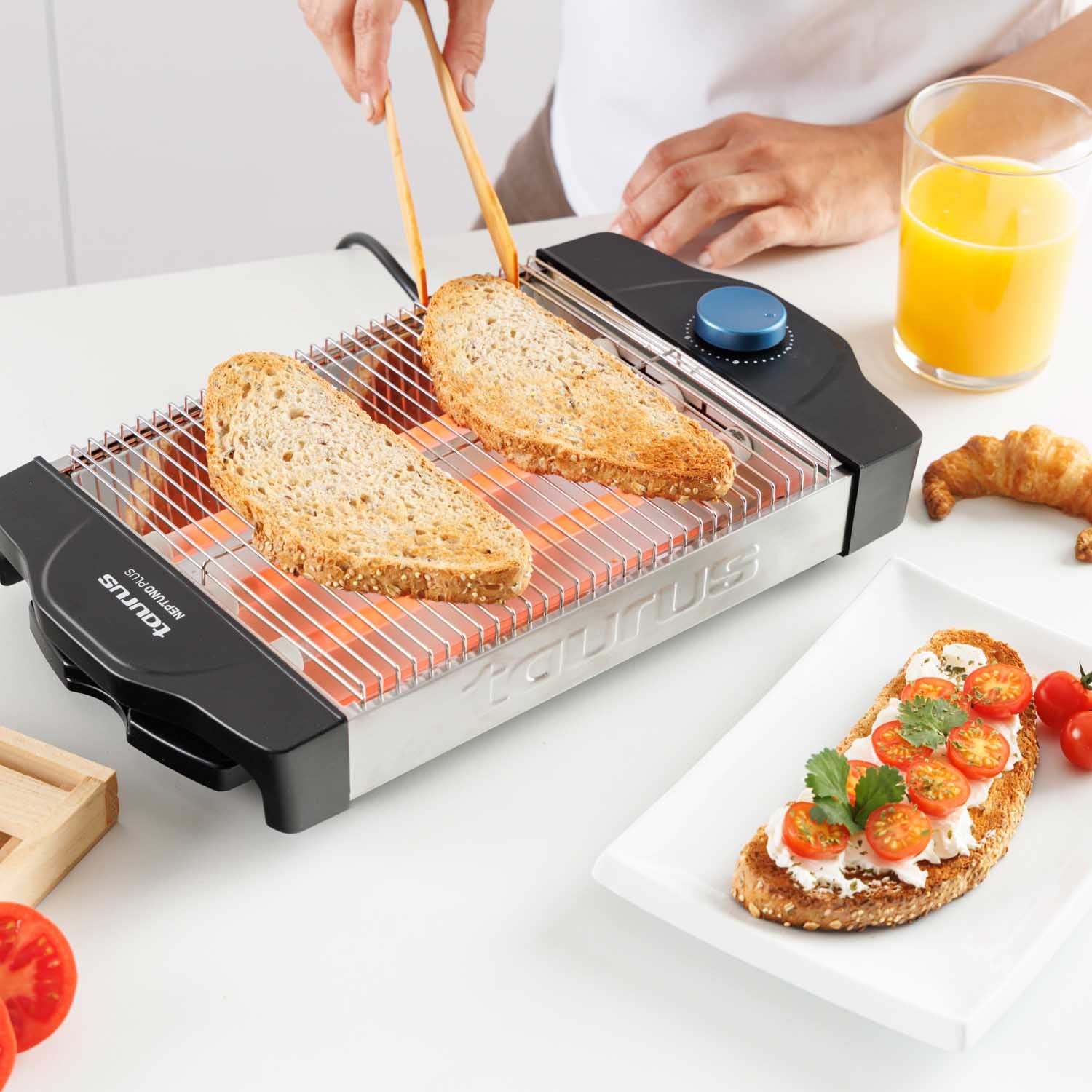 - Gran superficie de tostado de 24 x 20 cm